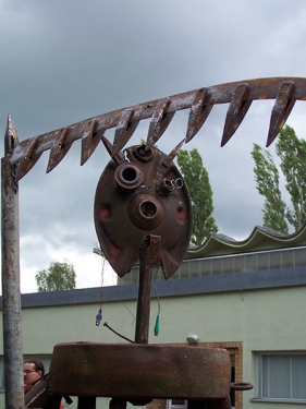 An diesem Projekt waren 6 Jungen und 4 Mädchen der 8. und 9. Klasse beteiligt. Nach einer von den Schülern organisierten Schrottsammlung in Brück und in den Orten der Umgebung bestand die Aufgabe darin, aus den Sammlerstücken eine oder mehrere kleine Skulpturen mit Hilfe von Trennen und Schweißen zu errichten, so die Idee der Kunstlehrerin K. Haseloff.